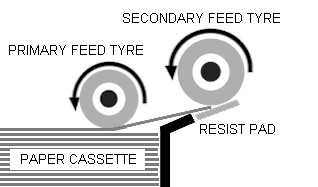 - Primary paper feed tyre, feeds the the topmost